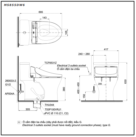 Nắp rửa điện tử (W6): TCF6531Z (220V)