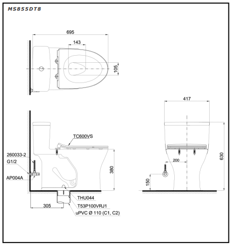 Bàn cầu 1 khối kèm nắp đóng êm TC600VS – MS855DT8