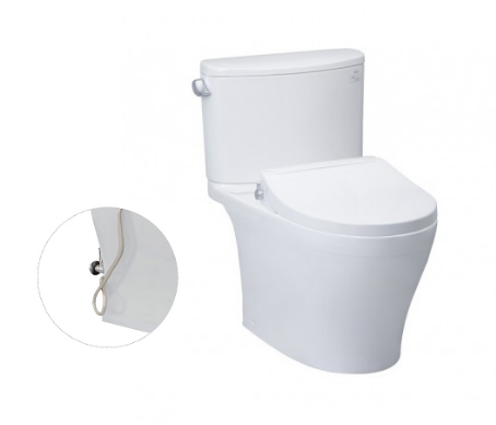 Bên cạnh đó, bồn cầu hai khối này còn tích hợp vòi rửa nước lạnh với chức năng rửa sau. Bạn sẽ không cần phải sử dụng giấy vệ sinh nữa, giúp tiết kiệm chi phí và bảo vệ môi trường.