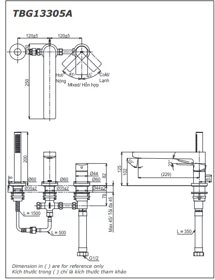 1. Mô tả bảng điều khiển sen âm 5 đường nước TOTO dòng G TBV11150A