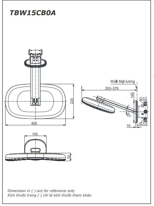 Bản vẽ kỹ thuật bát sen gắn tường TOTO dòng G TBW15CB0A