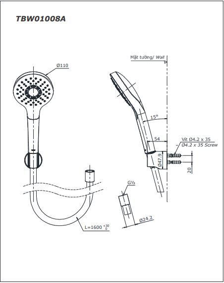 Lưu ý: Bao gồm gác sen, không bao gồm cút nối tường