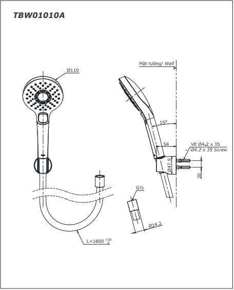 Bát Sen Tay TBW01010A có đường kính lớn, đạt 110 mm, mang đến không gian tắm rộng rãi và thoải mái. Với áp lực nước từ 0.05 đến 0.75 MPa, bạn có thể điều chỉnh dòng nước một cách linh hoạt để tạo ra mức áp lực phù hợp với sở thích của mình. Lưu ý rằng sản phẩm này bao gồm gác sen, nhưng không bao gồm cút nối tường.
