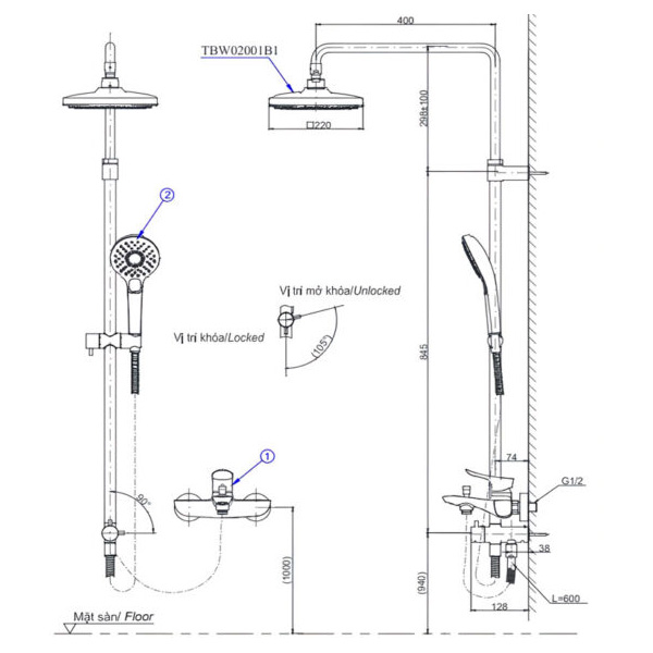 Áp lực nước: 0.15MPa ~ 0.75MPa