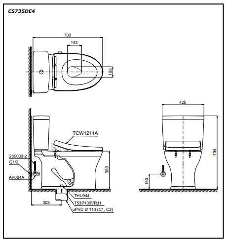 Áp lực nước: 0.05 ~ 0.70 MPa