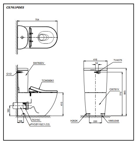 Bồn Cầu 2 Khối CS761PDE5