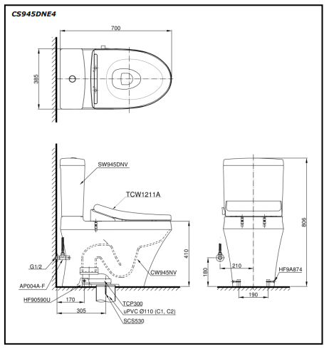 Bồn Cầu 2 Khối CS945DNE4