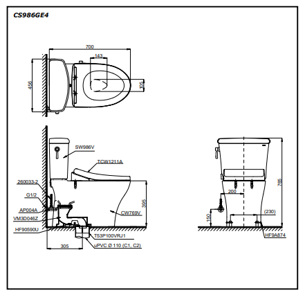 Nắp rửa cơ 2 chế độ (E4): TCW1211A