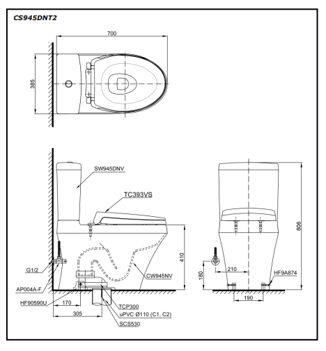 Bồn Cầu Hai Khối Kết Hợp Nắp Đóng Êm