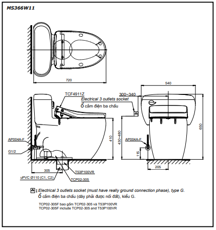 Nắp rửa điện tử (W11): TCF4911Z (220V)