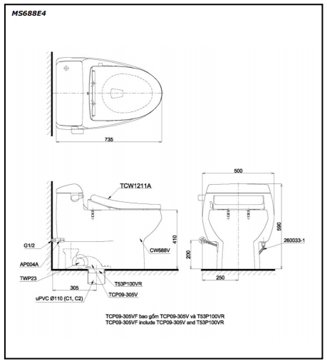 Nắp rửa cơ 2 chế độ (E4): TCW1211A