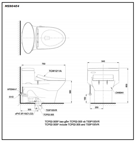 Nắp rửa cơ 2 chế độ (E4): TCW1211A