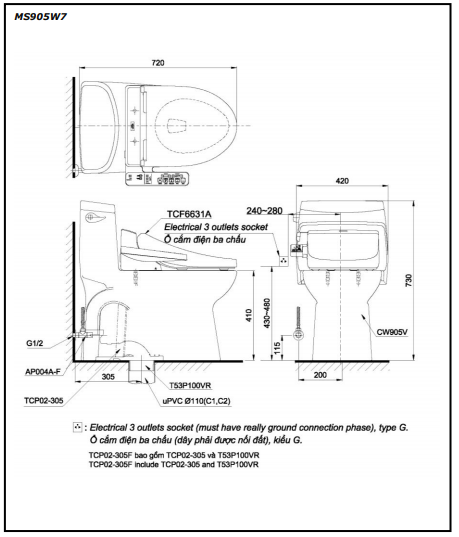 Nắp rửa điện tử (W7): TCF6631A (220V)