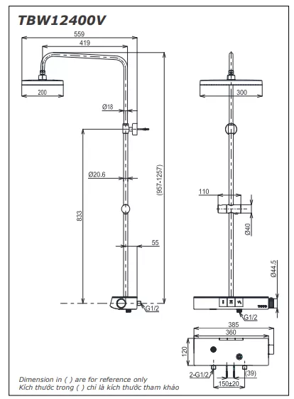 Bản vẽ kỹ thuật sen cây nhiệt độ TOTO TBW12400V