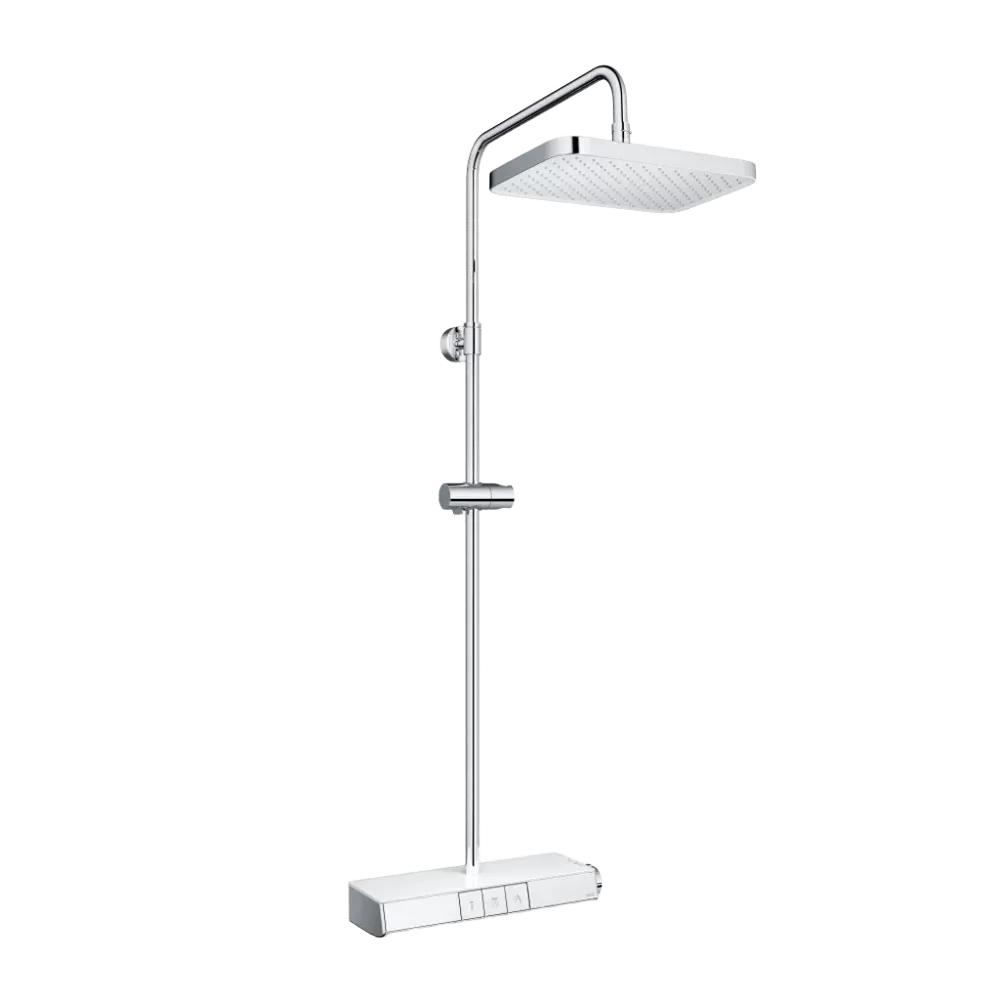 Thiết kế sang trọng, tối ưu mọi trải nghiệm: Sản phẩm đi kèm kệ để đồ tiện ích cùng thiết kế điều khiển dạng phím tiện lợi cho việc thao tác khi tắm. Người dùng có thể điều chỉnh chiều cao linh hoạt tùy theo nhu cầu sử dụng.