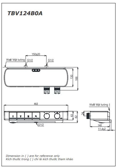 Bản vẽ kỹ thuật sen nhiệt độ TOTO dòng G TBV124B0A
