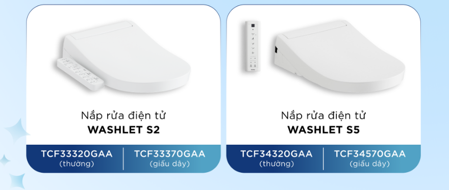1. 2 mẫu nắp rửa điện tử Washlet dành riêng cho bàn cầu thân chữ D