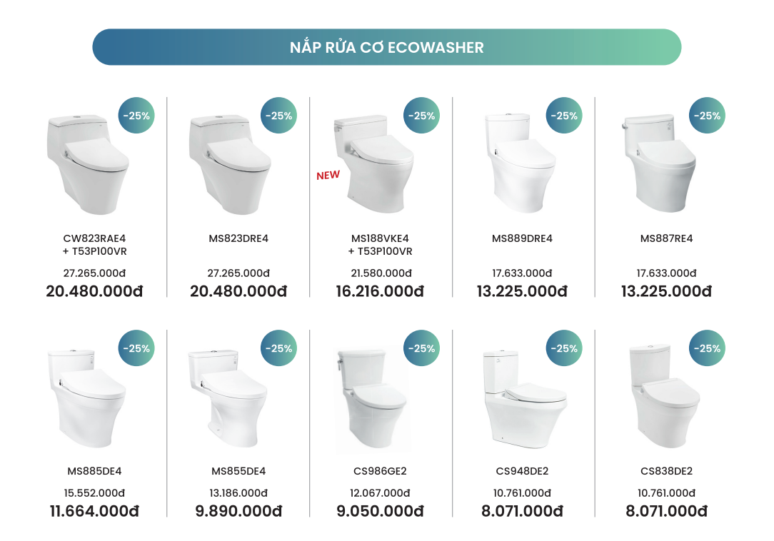 1.2. Khuyến mãi 25% đối với nắp rửa cơ Ecowasher