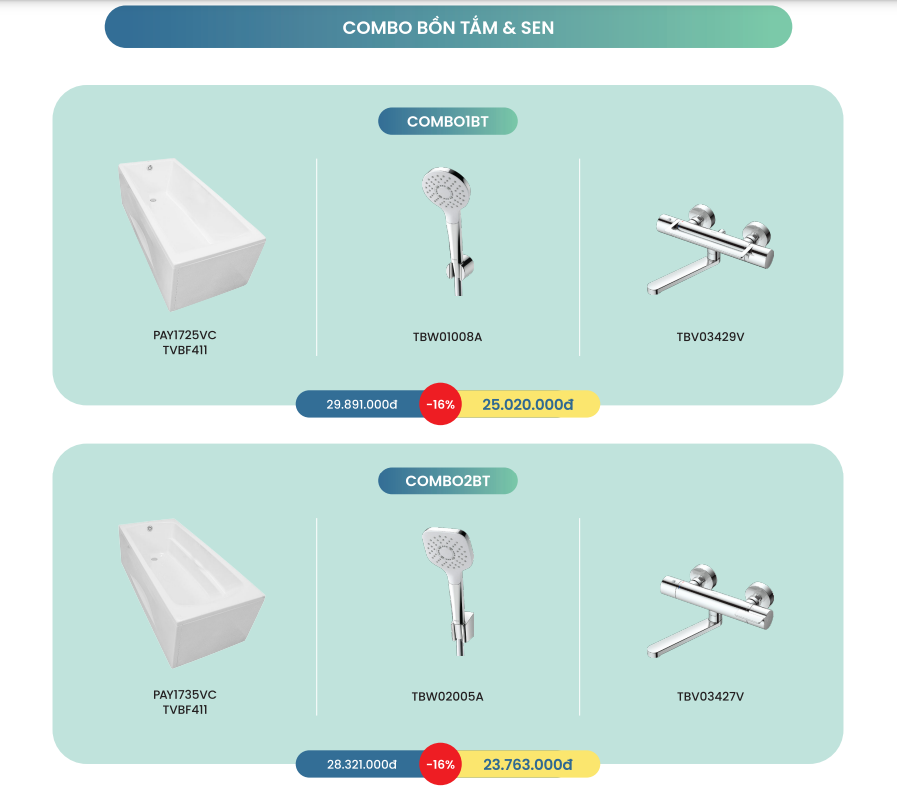 1.11. Ưu đãi cho combo bồn tắm và vòi bồn tắm