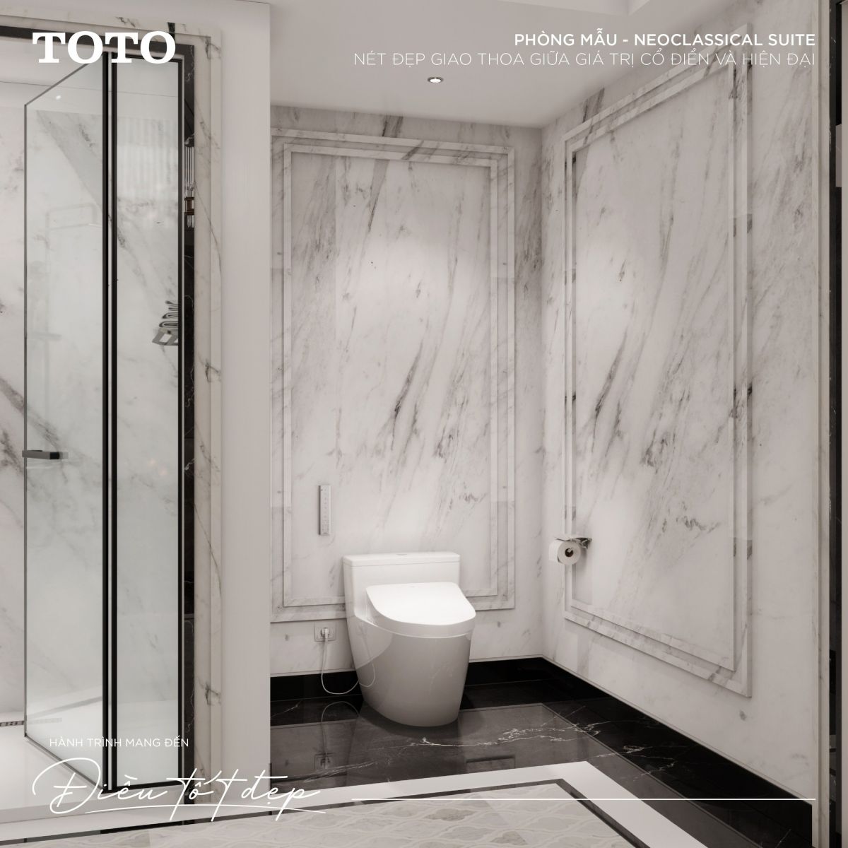 Phòng tắm NeoClassical là một không gian phòng tắm của sự hiện đại tinh tế và nét đẹp cổ điển. Nếu bạn đang tìm kiếm phong cách này cho ý tưởng phòng tắm của mình, có thể tham khảo ngay mẫu phòng tắm này của TOTO! Đừng quên, ghé TOTO Ngọc Quyến để lựa chọn thiết bị phòng tắm phù hợp nhất!