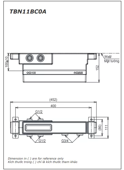 2. Thông tin chi tiết về van âm tường 2 đường nước TOTO dòng G TBN11BC0A