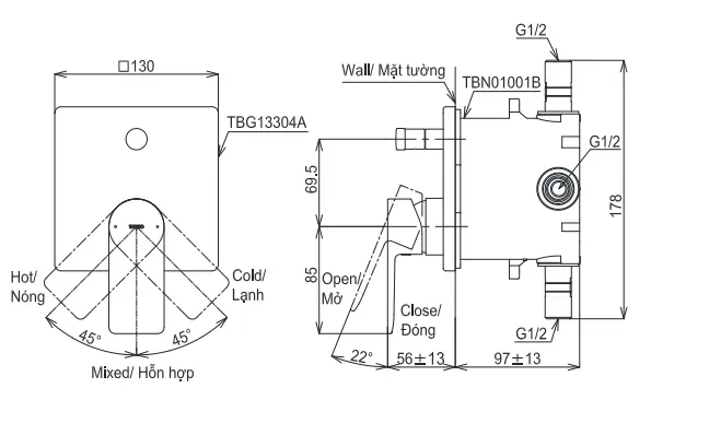 3. Thông tin chi tiết về van sen vòi âm tường kèm nút chuyển hướng GT TOTO TBG13304A