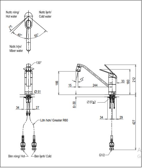 Với áp lực nước hoạt động từ 0.05 đến 0.75 MPa, vòi bếp này cung cấp sự mạnh mẽ và ổn định, giúp bạn dễ dàng làm sạch và rửa sạch các thành phần thực phẩm một cách nhanh chóng và tiện lợi.
