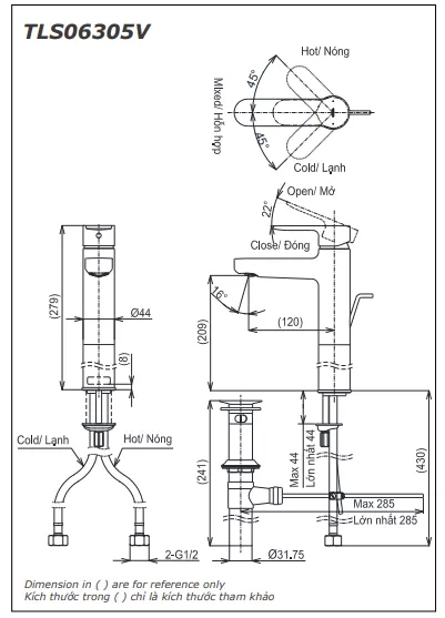 Bản vẽ kỹ thuật vòi chậu TOTO dáng cao TLS06305V